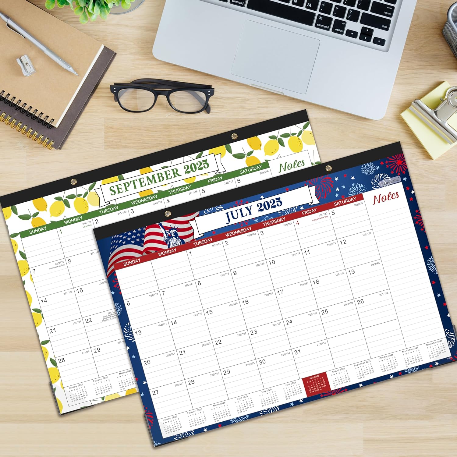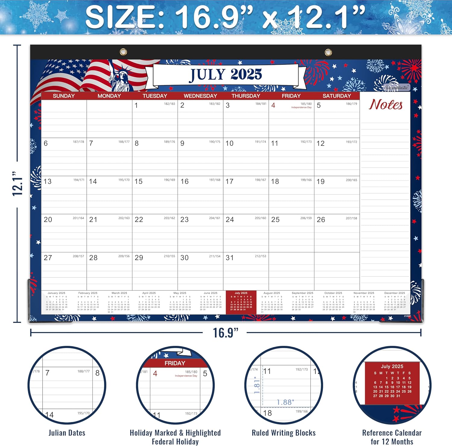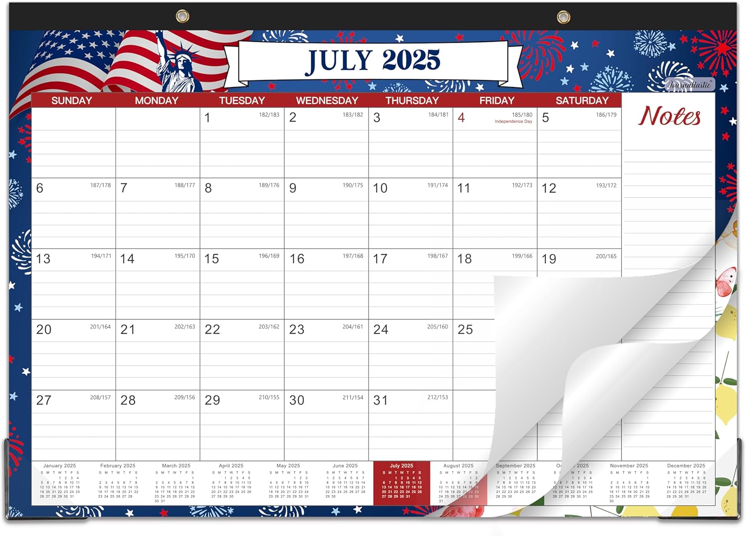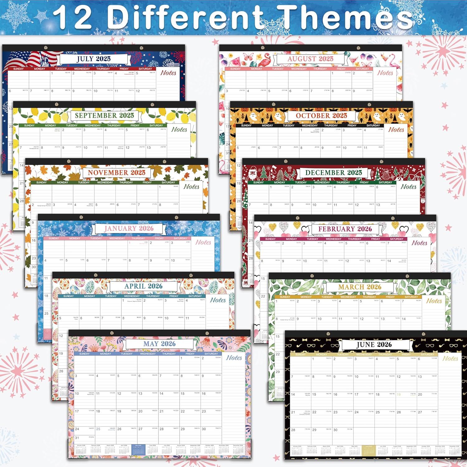 Desk Calendar 2025-2026 – 18 Monthly 2025-2026 Desk Calendar, 16.9″×12.1″, July 2025 – December 2026, Desk/Wall Calendar with Large Ruled Blocks, Corner Protectors – 12 Different Themes